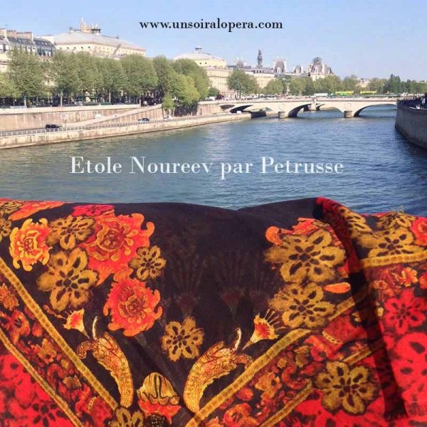 Pour cette étole en laine La Maison Petrusse s’est inspirée des motifs traditionnels russes et des décors muraux de l’appartement de Rudolf Noureev sur le Quai Voltaire. Cette grande étole en laine, rend hommage aux belles étoffes que collectionnait Rudolf Noureev.
